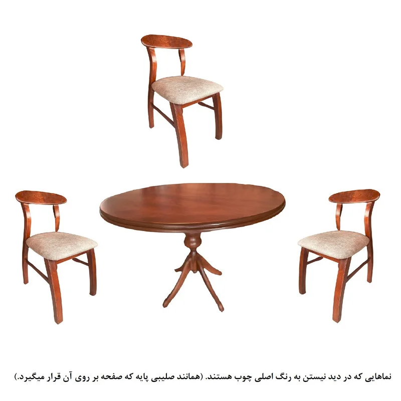 قطر میز: ۹۰ الی ۱۰۰ سانتی متر متغیر | اتصالات بسیار محکم | جدابودن صفحه میز از پایه برای راحتی در حمل و نقل | دارای صفحه موجدار شکیل و زیبا(طرح اصلی چوب) | پایه ها دارای موج (طرح اصلی چوب)