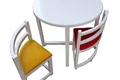 رنگ چوب سفید و ثابت /////// پارچه صندلی ها قابل انتخاب بر اساس تنوع /////// جاهایی که زیر کار هستن, رنگ خود چوب هستند/////// نسبت به کارهای مشابه ضخامت چوب بالا است/////// ابعاد حدودی است/////// تفاوت جزئی در رنگ بدلیل عکاسی