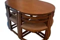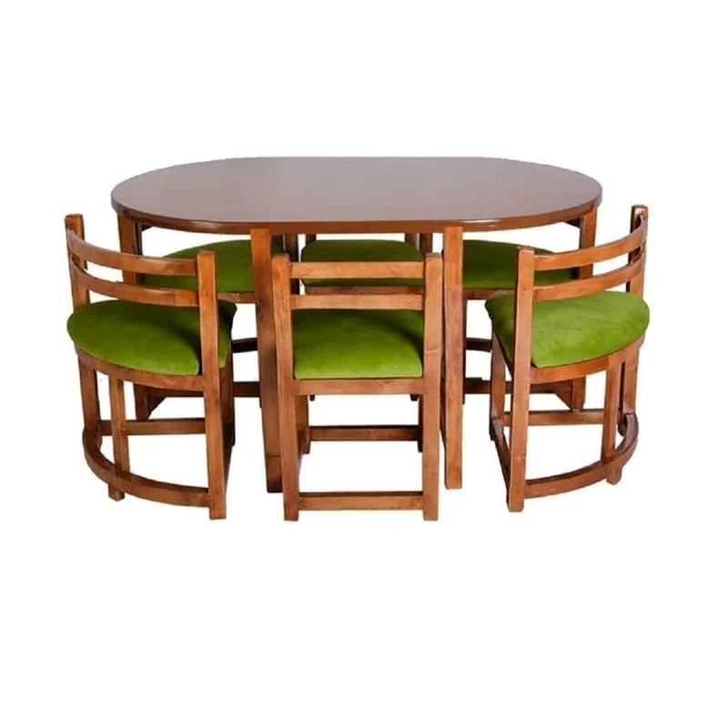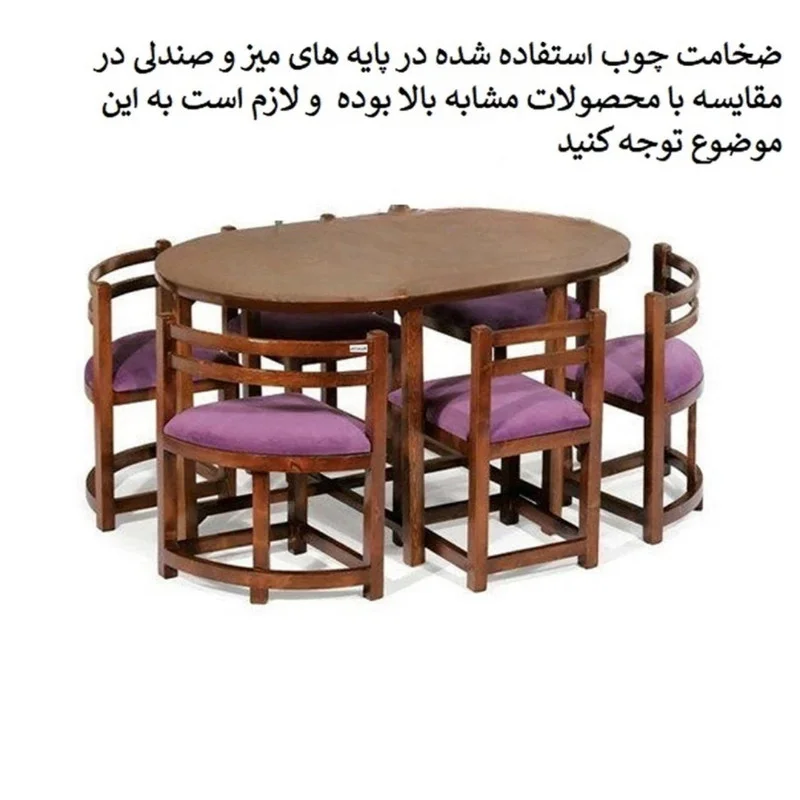 میز و صندلی غذاخوری کمجا یک محصول بسیار مفید و کارآمد و در عین حال با کمترین فضای اشغالی می باشد. این میز و صندلی های گالری آشنایی یکی از با کیفیت ترین و زیباترین محصولات است که با طراحی زیبایی که دارند، بسیار جذاب می باشند. این میز و صندلی ضخامت چوب استفاده شده در آن حدود 4-5 سانتی متر میباشد. این محصول تحمل وزن بسیار بالایی داشته و جزء کارهای بسیار پرفروش می باشد و طرفداران زیادی دارد. توجه کنید که این محصول دارای ضخامت چوب بالایی است