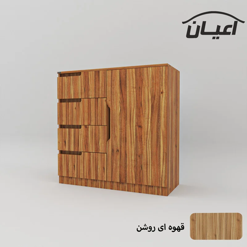دراور چند منظوره اعیان - جنس نئوپان ملامینه شرکتی - سطح ضدخش - طراحی ساده و کاربردی -دارای چهار کشو بازشو و یک درب کمدی دارای فضای مجزا میله رگال-دستگیره به صورت سی ان سی - بسته بندی با لوگو و برند اعیان. تنها در صورتی کالای انتخابی مطابق با تصاویر و مشخصات درج شده خواهد بود که هنگام انتخاب فروشنده، فروشنده رسمی برند اعیان که با تیک آبی مشخص شده است را انتخاب نمایید. هنگام خرید و دریافت کالا به بسته بندی و لوگوی برند اعیان دقت فرمایید. این کالا توسط برند اعیان در رنگ های سفید/مشکی/قهوه ای/قهوه ای روشن/قهوه ای تیره (ونگه)و چند رنگ (قهوه ای و سفید)تولید می شود.