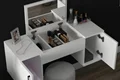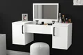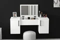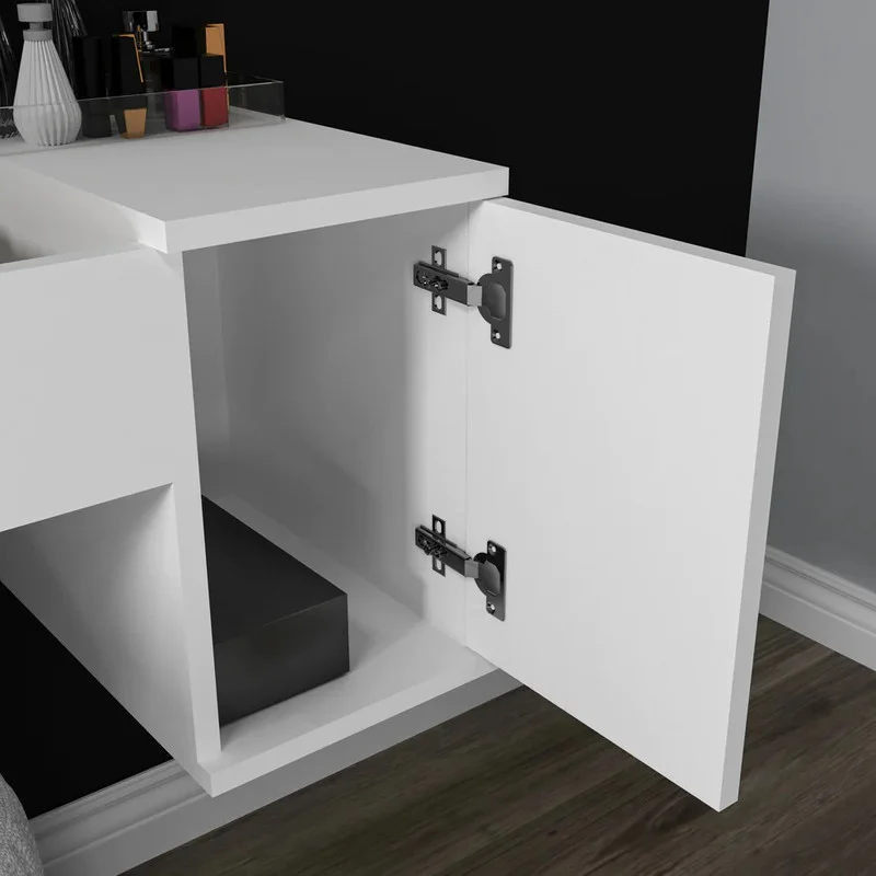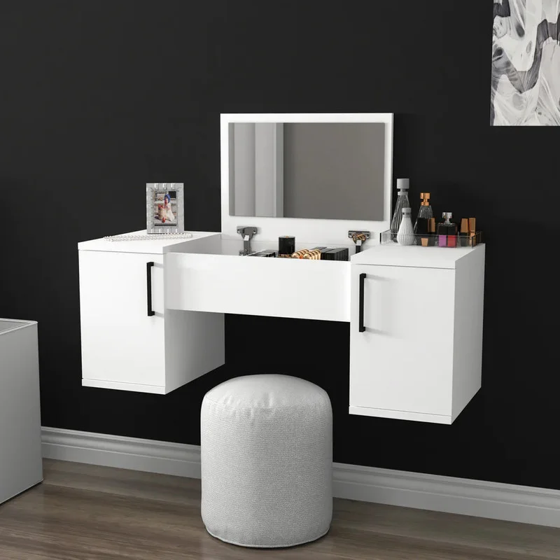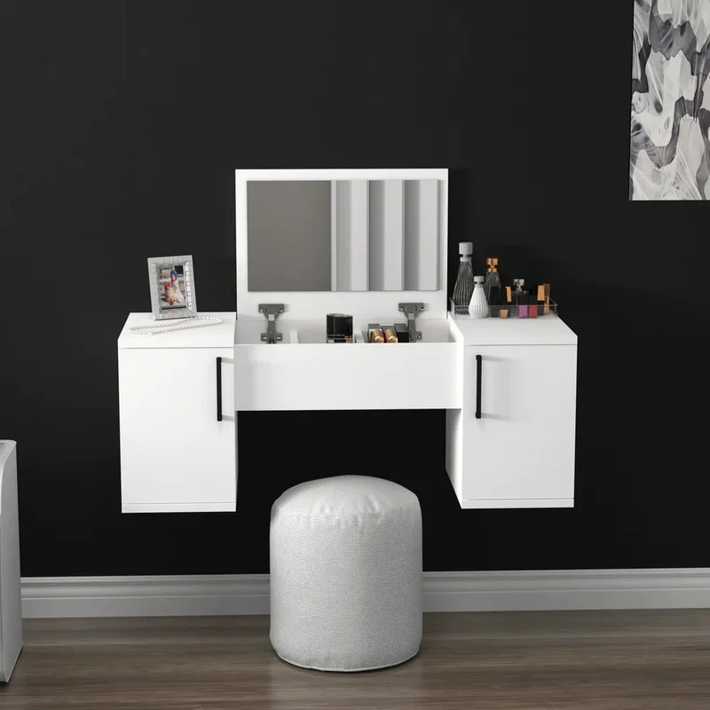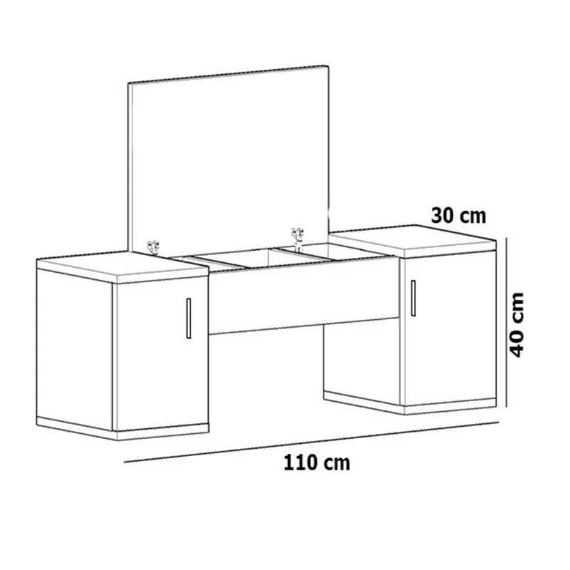 میز آرایش مدل 671 جنس روکش از ملامینه میباشد و دارای دو درب و یک باکس با لولای آرام بند با کیفیت و این کالا از استحکام و مقاومت بالایی برخوردار است و در رنگ بندی های زیبا و شکیل میباشد. (((((( کالای ارسالی دارای صندلی و آیینه نمیباشد))))))