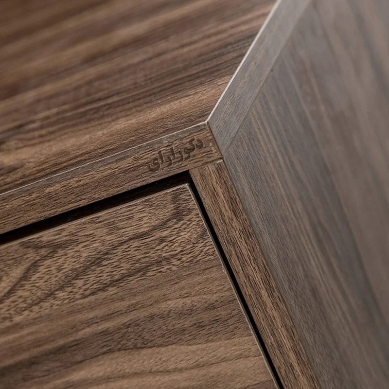 این محصول توسط مجموعه دکورآرای به صورت دقیق و با ظرافت طراحی و تولید شده است. متریال به کار رفته در پاتختی MDF مرغوب بوده و در بخش های مختلف آن نیز از روکش وکیوم استفاده شده تا علاوه بر زیبایی، دوام و کیفیت محصول برای سال ها استفاده، حفظ شود. این پاتختی دارای دو کشو با ریل ساچمه ای 3 زمانه و اتصالات مقاوم و با دوام است. هنگام خرید به برند محصول دقت کنید تا از کیفیت آن اطمینان پیدا کنید.