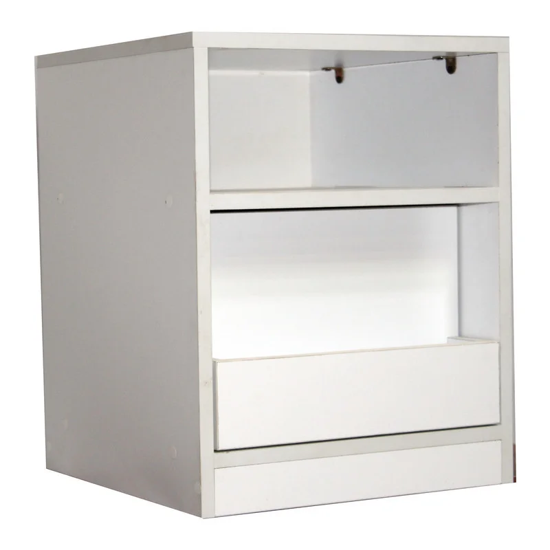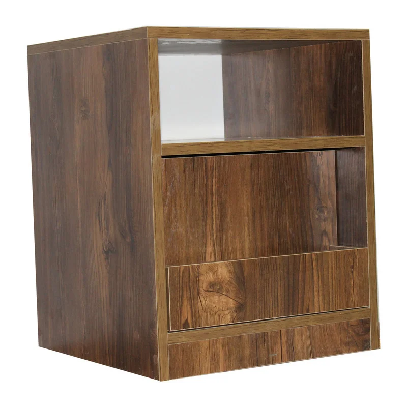 میز پاتختی کشودار IKE312 دارای کشو جادار و دارای ریل ساچمه ای درجه یک و جنس روکش از (ملامینه ضد خش) میباشد . دارای سه رنگ گردویی ، آنتیک طلایی (قهوه ای) و سفید زیبا میباشد.