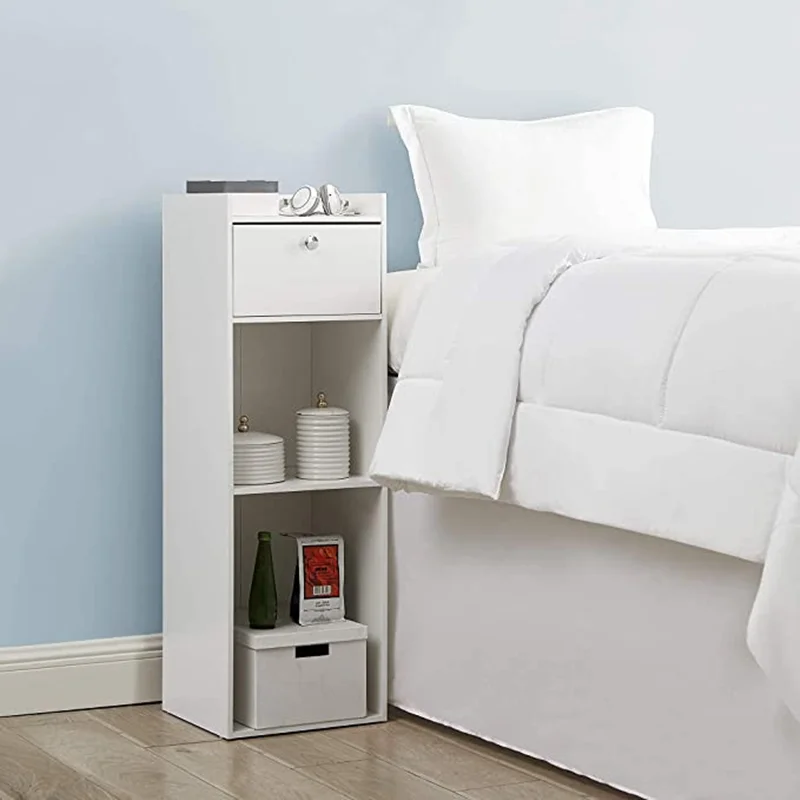 میزپاتختی کشو و طبقه دار مهام دارای 2 طبقه و یک عدد کشو و کشو دارای ریل ساچمه ای درجه یک و جنس روکش از ملامینه ضد خش میباشد و دارای رنگ بندی های زیبا و شکیل میباشد .
