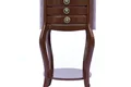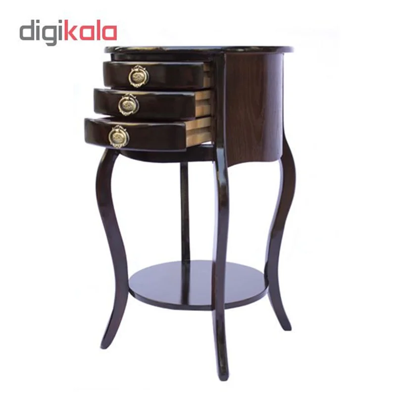 میز تلفن با طراحی زیبا، کیفیت ساخت عالی و رنگی براق برای دکورهای کلاسیک یک انتخاب ایدئال است. این میز برای قرار دادن گوشی تلفن، گلدان، مجسمه و یا حتی بهعنوان عسلی در گوشهی پذیرایی مناسب خواهد بود. این میز تلفن دارای 3 عدد کشو در طبقه فوقانی بوده که از آنها میتوانید برای قرار دادن لوازم ریزی که همیشه باید در دسترس باشند استفاده کنید. طبقه زیرین نیز برای قرار دادن مجسمههای کوچک قابل استفاده است. این میز ارتفاع بلندی دارد کاملا همسطح با مبل خواهد بود و بهراحتی میتوانید روی مبل نشسته و با تلفن صحبت کنید. البته این امر در خصوص تلفنهای سیمدار صدق میکند. این میز ساخته از بهترین نوع چوب بوده و رنگی که روی آن زده شده براق است. فقط کافی است با یک دستمال خشک و یا کمی نمناک آن را بهراحتی تمیز کنید. این میز در نهایت سادگی میتواند جلوهای متفاوت به منزل شما ببخشد.